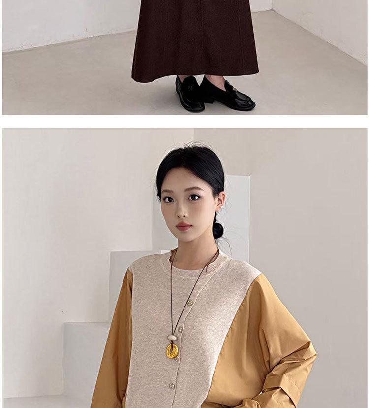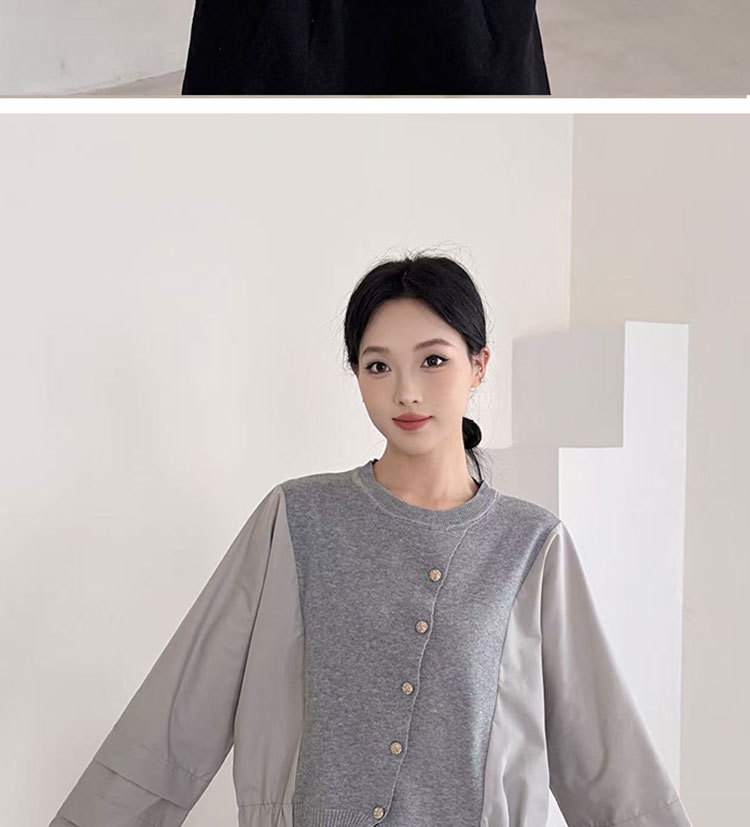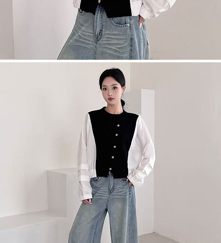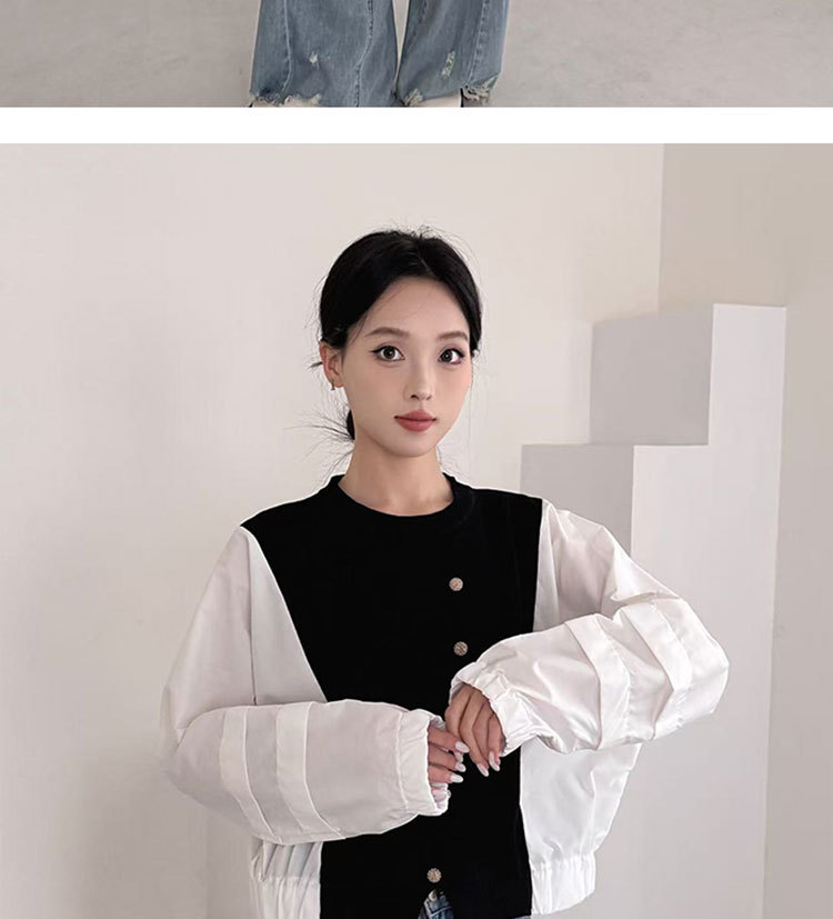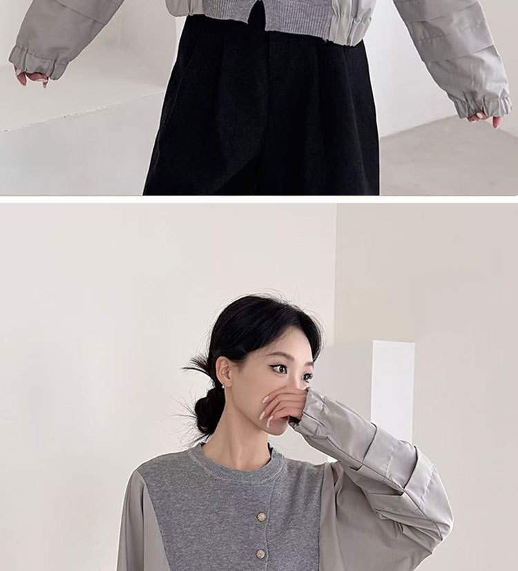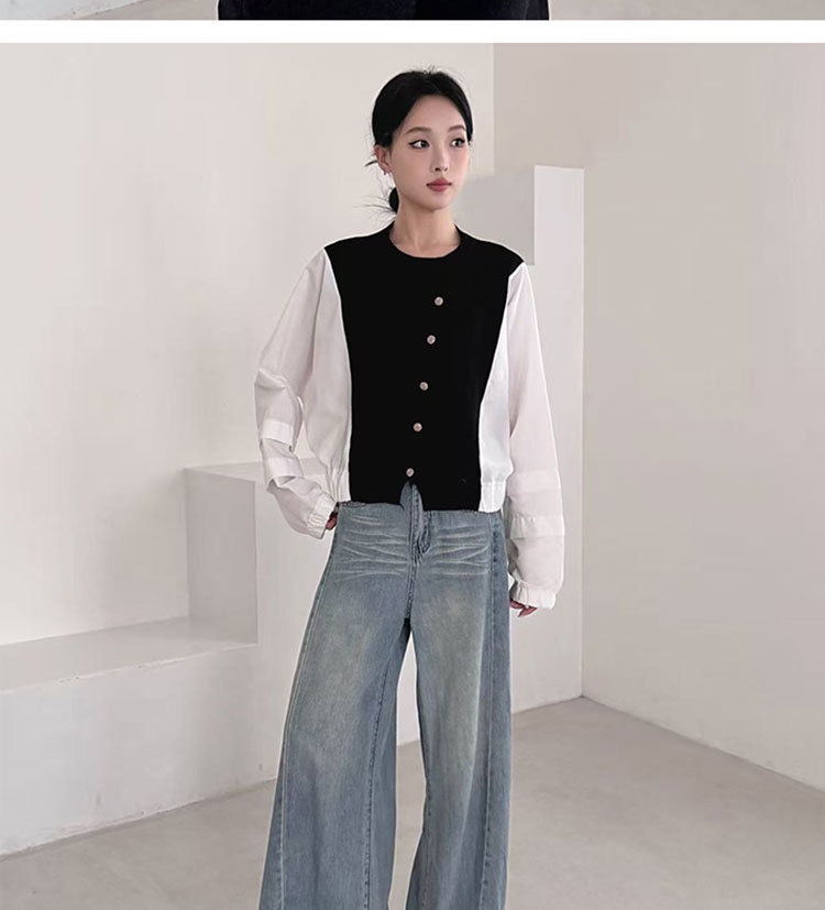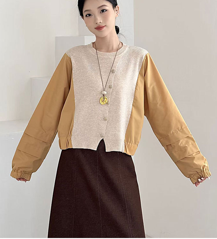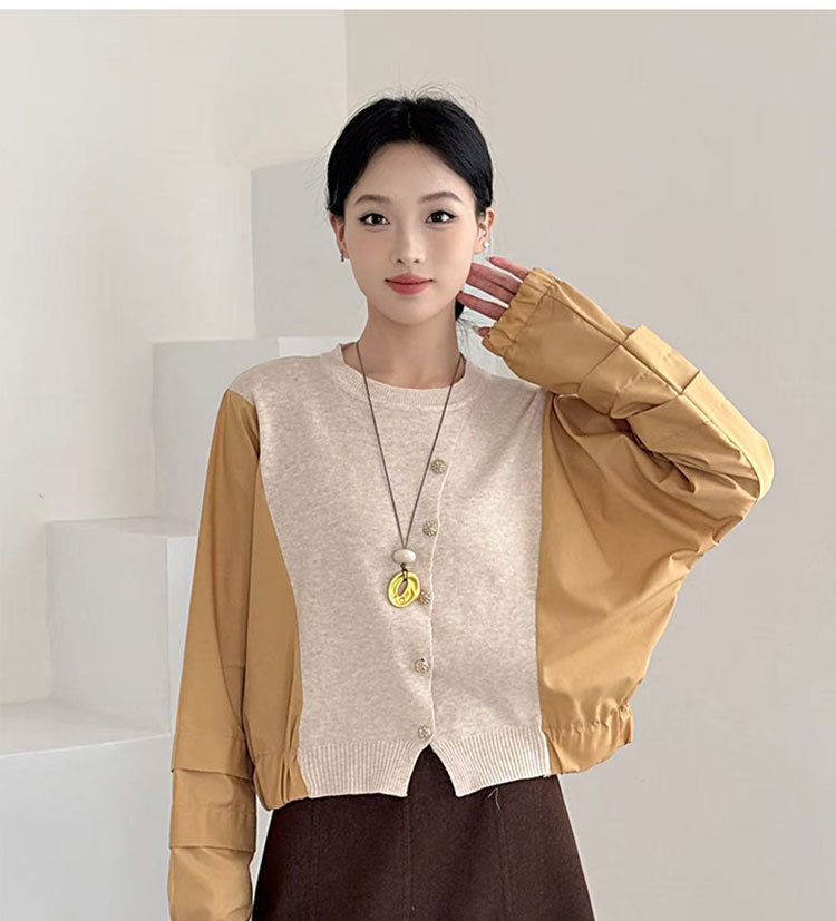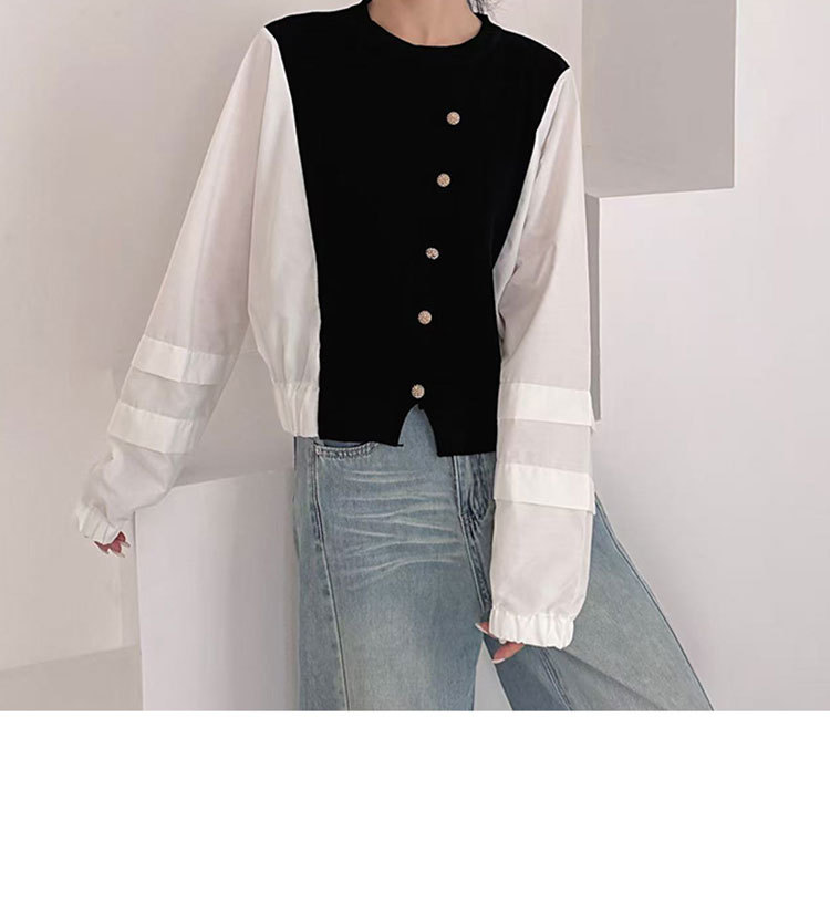 Fashion Color-block Knit Button-up Crewneck Shirt for WomenPlus SizeStyleAutumn New Arrival