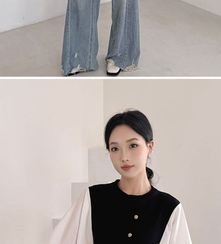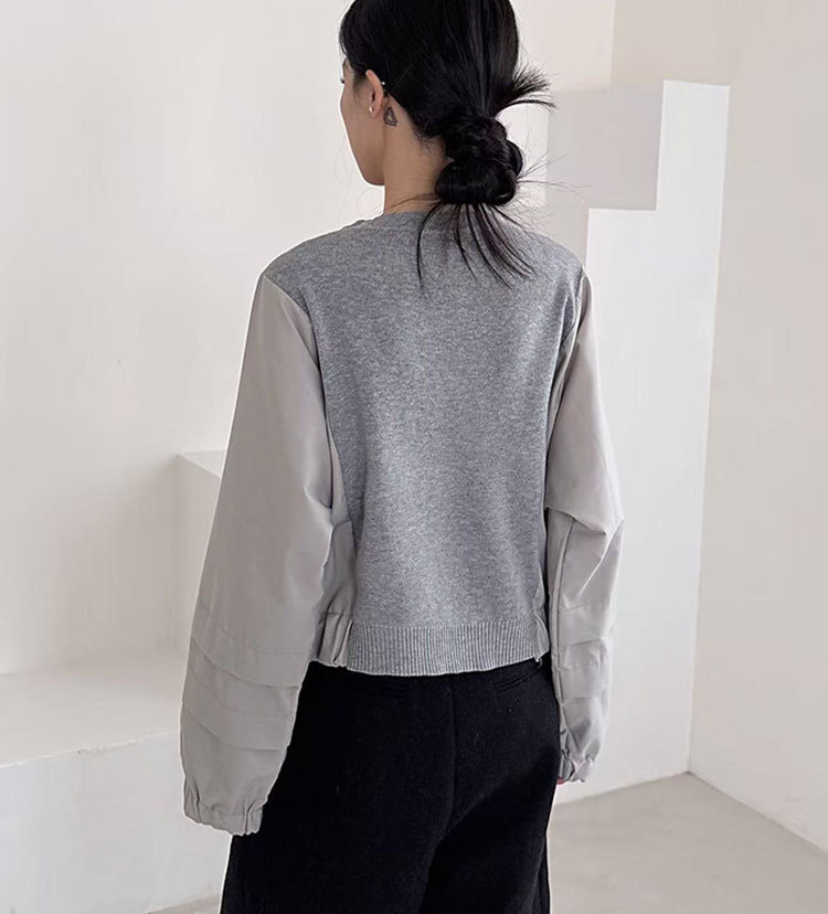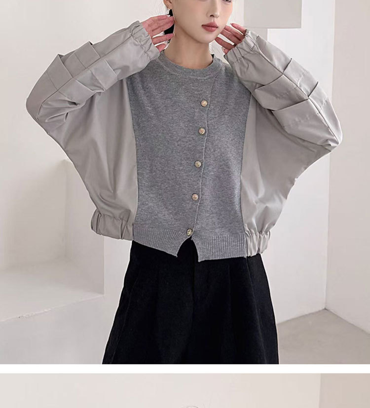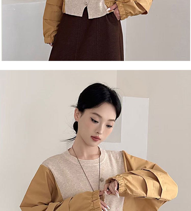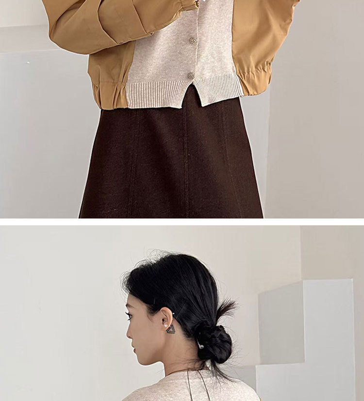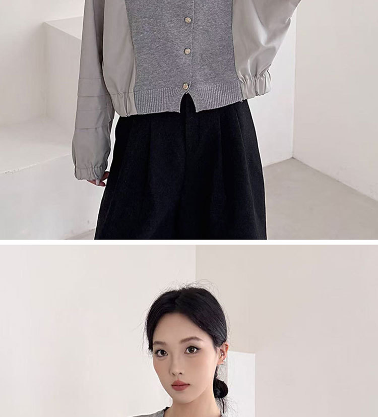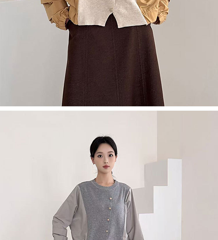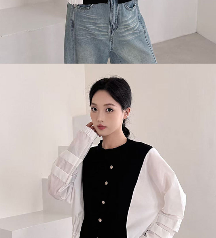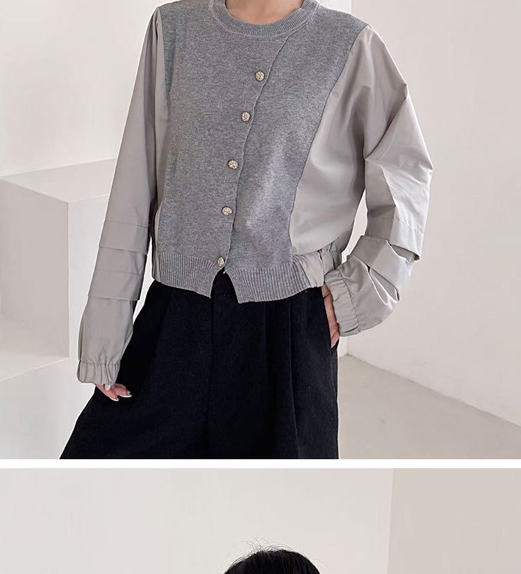 Fashion Color-block Knit Button-up Crewneck Shirt for WomenPlus SizeStyleAutumn New Arrival