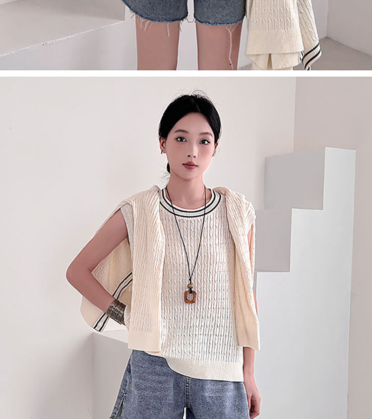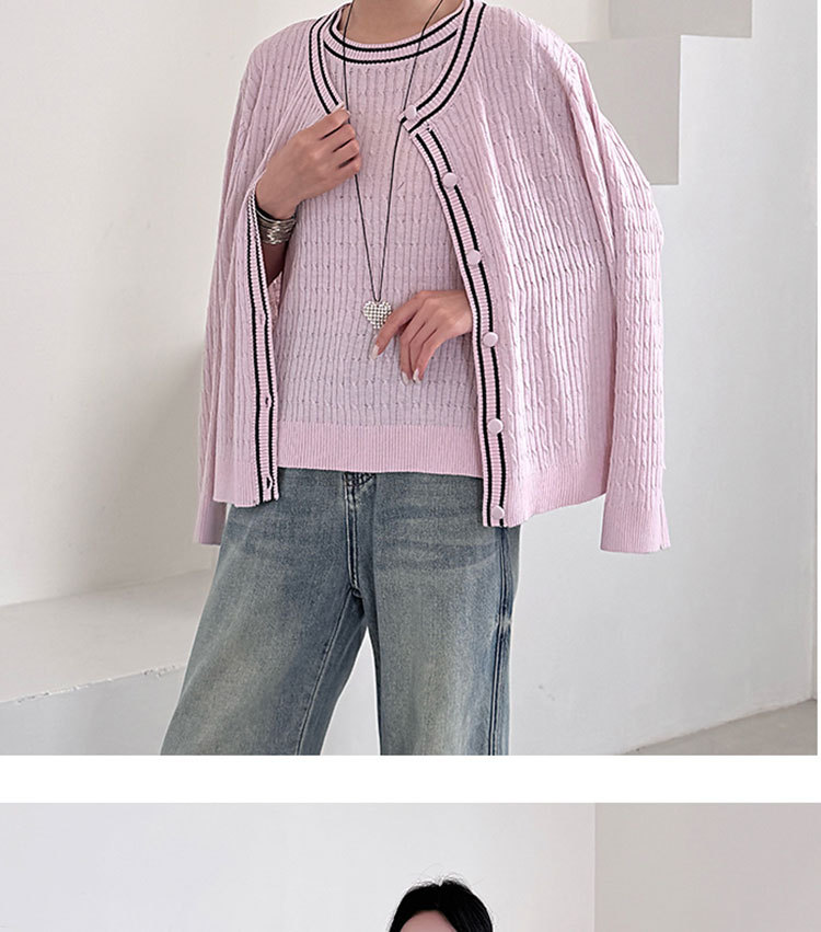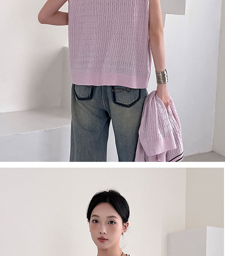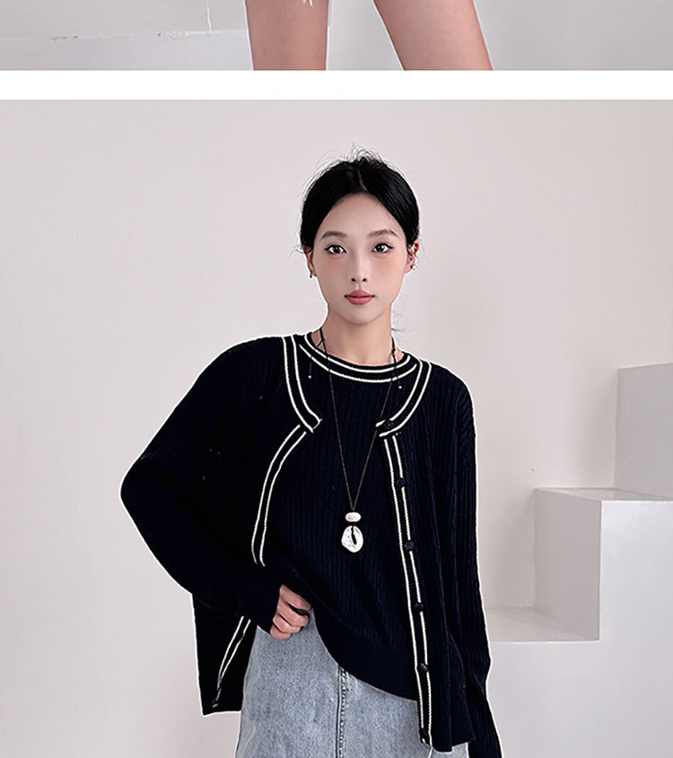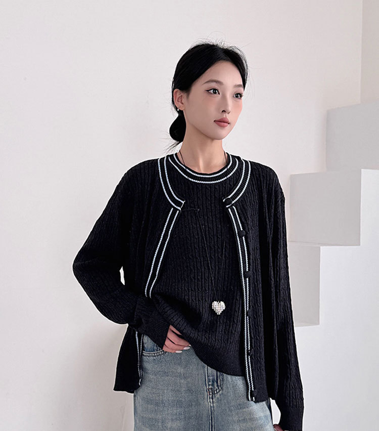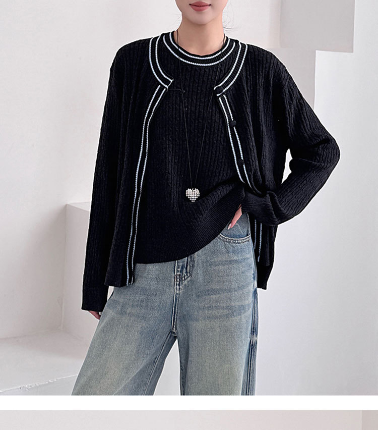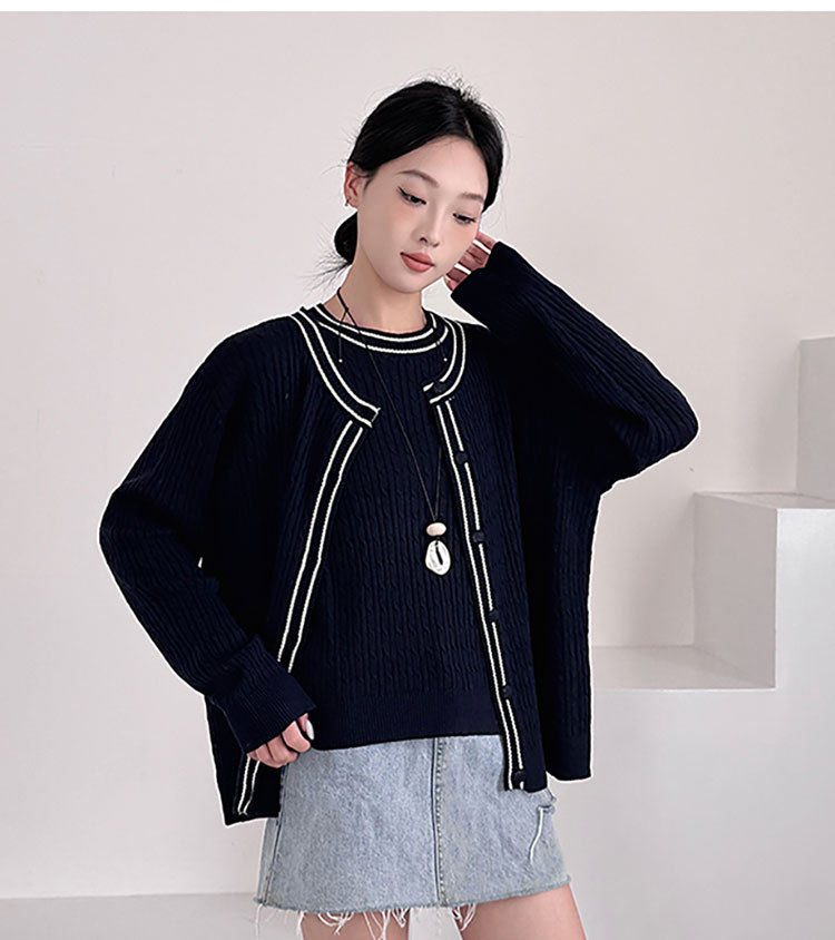 Fashion Korean Style Plus Size Loose Knit Sweater Two-Piece Set Cardigan + Vest Women's Top